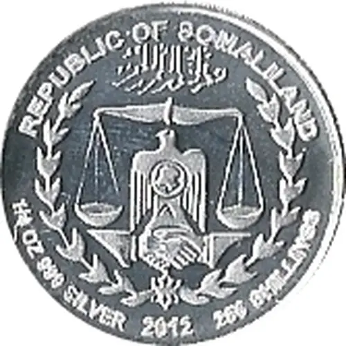 | Obverse lettering | REPUBLIC OF SOMALILAND 1/4 OZ 999 SILVER 2012 250 SHILLINGS |