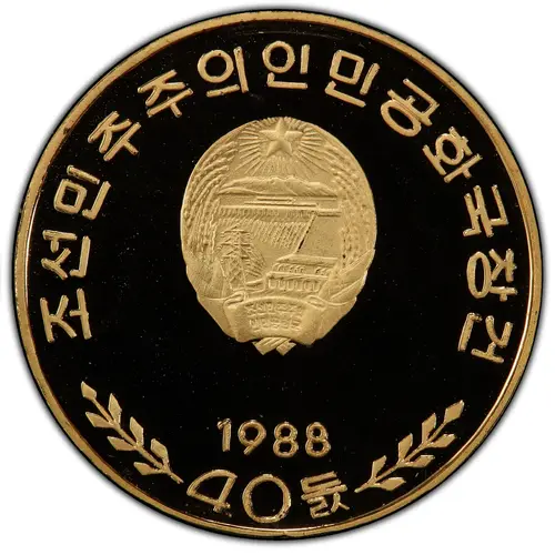 | Obverse lettering | 조선민주주의인민공화국창건 1998 40돐 (Translation: 40th anniversary of the founding of the Democratic People`s Republic of Korea) |
