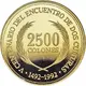 | Reverse lettering | V CENTENARIO DEL ENCUENTRO DE DOS CULTURAS • 1492 - 1992 • 2500 COLONES (Translation: 5th Centennial of the Encounter of two cultures) |