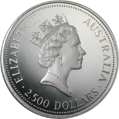 | Obverse lettering | ELIZABETH II AUSTRALIA 2,500 DOLLARS RDM |