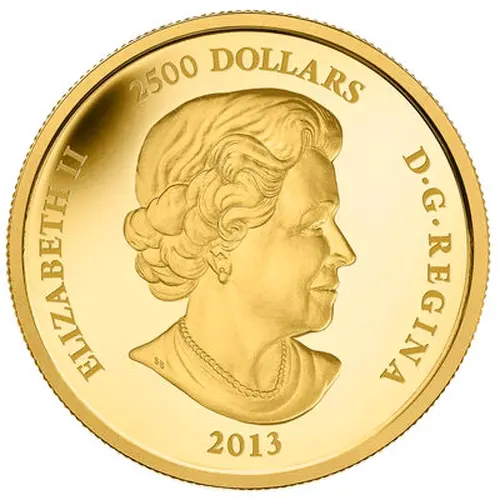 | 表面の銘文 | ELIZABETH II 2500 DOLLARS D•G•REGINA SB 2013 (Translation: Elizabeth II Queen by the grace of God) |