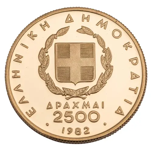 | Legenda awersu | ΕΛΛΗΝΙΚΗ AHMOKPATIA APAXMAI 2500 1982 |