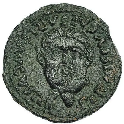 | Descrizione del dritto | Head of Silenus facing; below chin, amphora pouring liquid. Border of dots. |