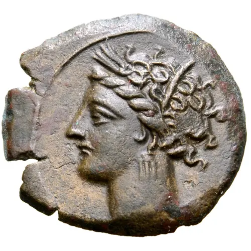 | توضیحات روی سکه | Wreathed head of Tanit left |