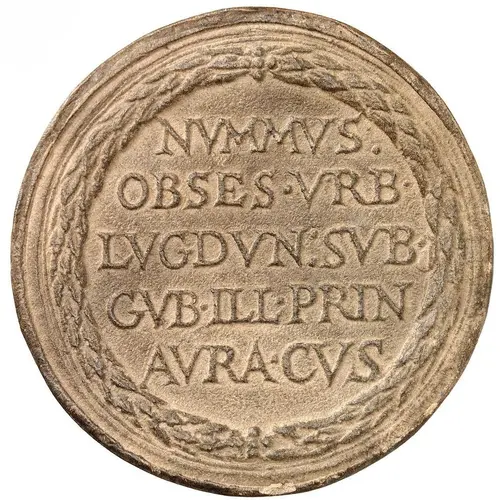 | Obverse lettering | NVMMVS . OBSES · VRB LVGDVN : SVB · GVB · ILL · PRIN AVRA · CVS (Translation: Siege coin of the City of Leiden under the governance of the exceptional Prince of Orange) |