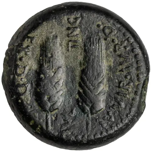 | Descrizione del rovescio | Head of Baal facing, transverse sceptre behind. |
