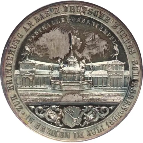 ZUR ERINNERUNG AN DAS II DEUTSCHE BUNDES-SCHIESSEN IN BREMEN IM JULI 1865 FESTHALLE & GABENTEMPEL |