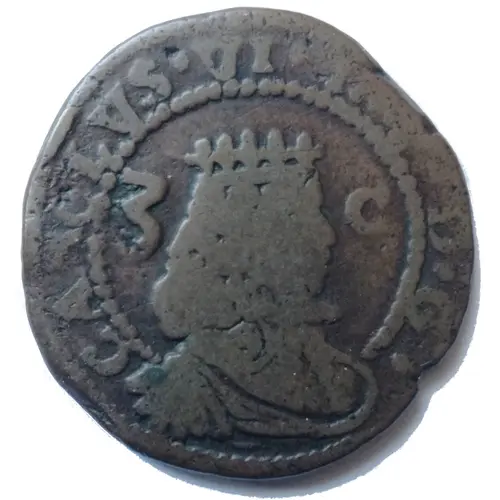 | Obverse description | Crowned bust right; on the sides, 3-C |