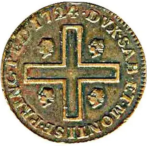 | Reverse lettering | ·1724·DUX·SAB·ET·MONTISF·PRINC·PED |