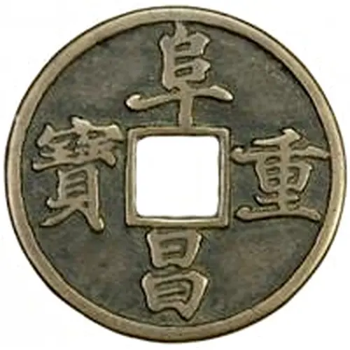 | 正面铭文 | 阜 寶 重 昌 (Translation: Fu Chang Zhong Bao Fuchang (era of Liu Yu, 1130-1137) / Heavy currency) |