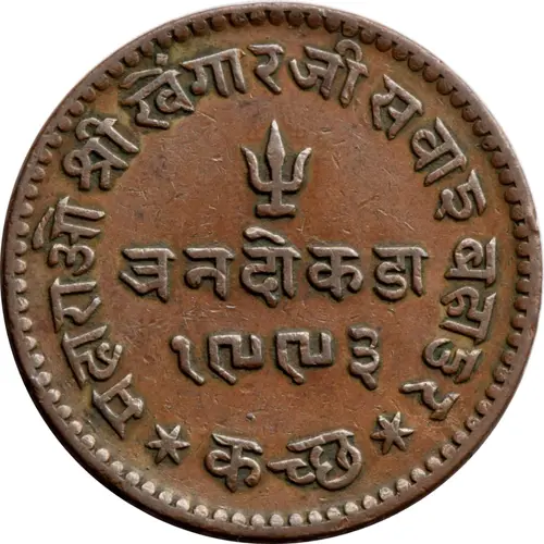 १૯૯३ (Translation: 3 dokda, (VS)1993 Maharao Shri Khengarji Sawai Bahadur*Kutch*) |