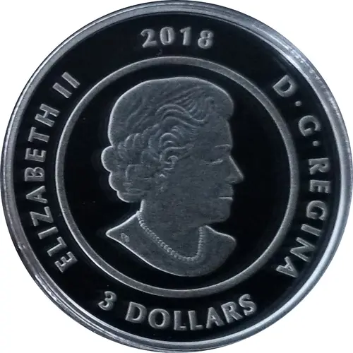 | Obverse lettering | ELIZABETH II 2018 D•G•REGINA 3 DOLLARS (Translation: Elizabeth II Queen by the grace of God) |