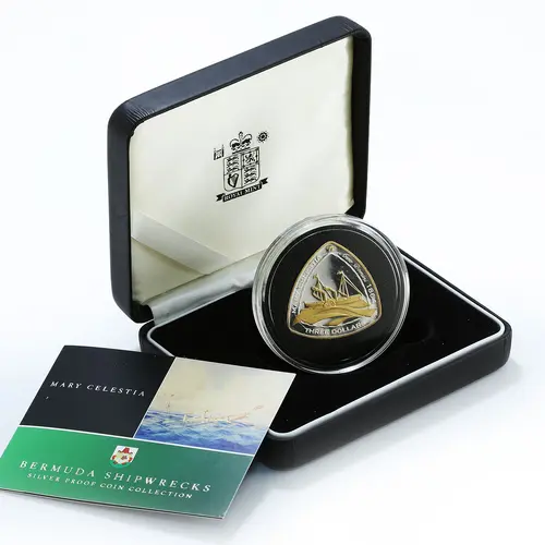 Gold-plated image of the `Mary Celestia` within knotted frame, wild boar above and denomination below. |