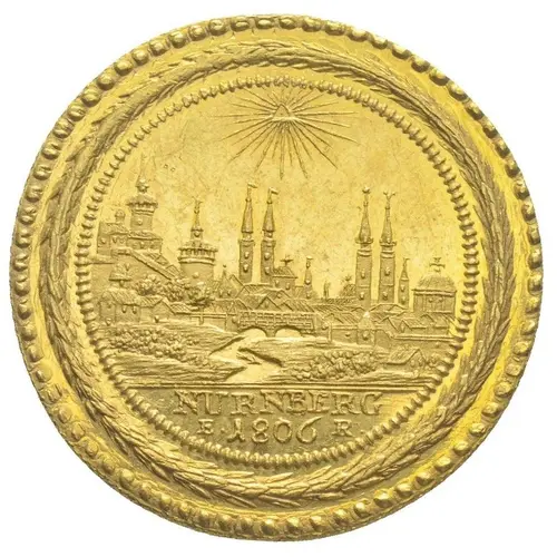 | Aversbeschreibung | City view from the west in a pearl-dot and laurel rim. |