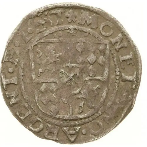 | Obverse description | Quartered coat of arms with small shield at center. |
