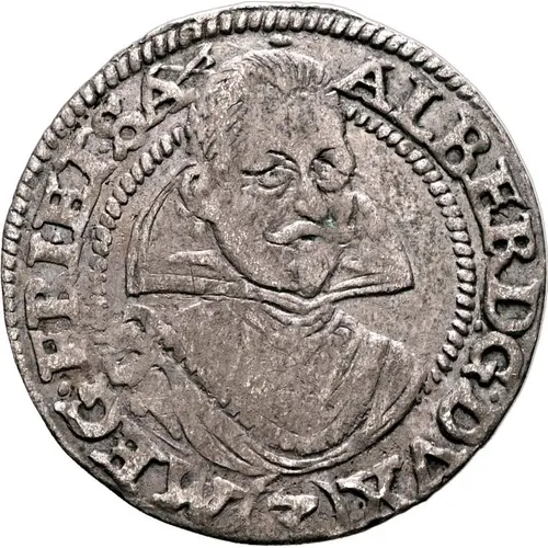 Mô tả mặt trước Bust portrait of Albrecht von Wallenstein looking right, surrounded by legend, mintmaster sign (burin) on top.