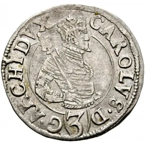 | Obverse description | Half sized armoured portrait of Karl II of habsburg facing right in a circle, with scepter in right hand. Value below dividing the legend. |