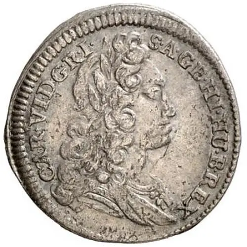 | Descrição do anverso | Portrait of Karl VI of Habsburg facing right dividing the legend both on top and bottom. Legend (starts 7h) for `Carolus VI Dei Gratia Romanorum Imperator Semper Augustus, Germaniae, Hispaniae, Hungariae, Bohemiae Rex` |