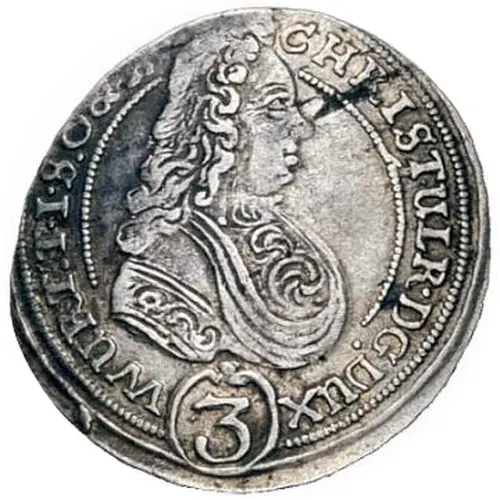 | Obverse lettering | (D.G.) CHRIST. (U)(V)LR(IC). (—) (D.G.) DUX. (—) W(URT). T. I. S. O. (&) B. |