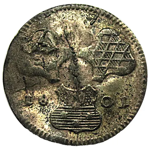 | Obverse description | 3 shields, date seperated at bottom. |