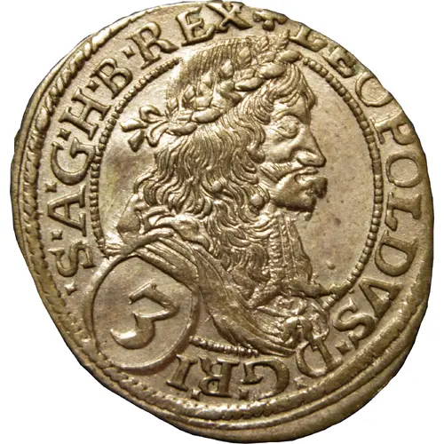 | Aversbeschreibung | Leopold I of Habsburg (1640-1705) facing right. Legend around `Leopoldus, Dei Gratia, Romanorum Imperator Semper Augustus, Germaniae, Hungariae Bohemiaeque rex`. |