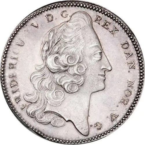 | Obverse lettering | FREDERICUS V D. G. REX DAN. NOR. V. G. (Translation: Frederik V with the Grace of God, King of Denmark, Norway, of the Goths and the Wends) |