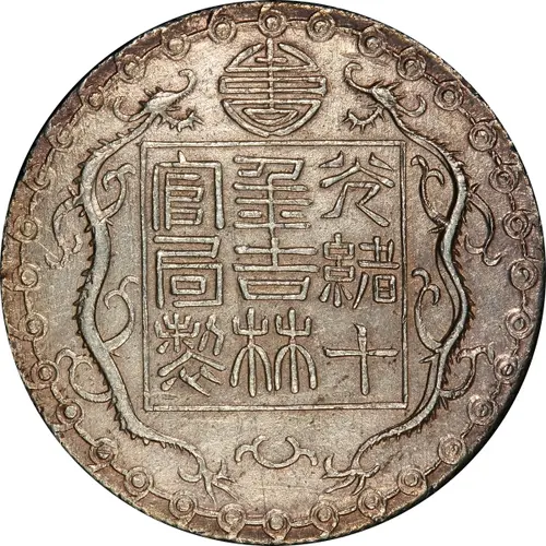 | Obverse lettering | 官年光 局吉緒 製林十 (Translation: Guangxu, 10th Year / Kirin Official Mint) |