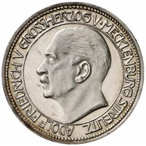 | Obverse lettering | ADOLF FRIEDRICH V GROSSHERZOG V . MECKLENBURG STRELITZ |