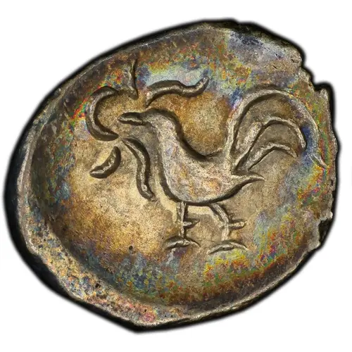 Mô tả mặt trước Stylised Rooster facing with extra feathers in front.