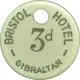 | Obverse lettering | BRISTOL HOTEL 3d - GIBRALTAR - |