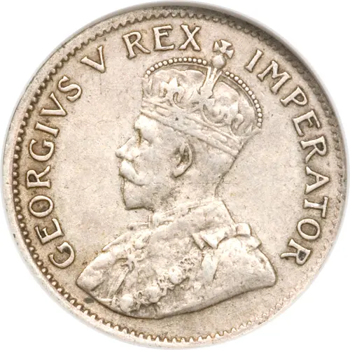 Technical/Grading: Struck in .800 fine silver, weighing 1.414 grams and measuring 16.3 millimeters, this diminutive coin is often referred to as a "tickey." Key high-points for grading include the hair details above George V’s ear and temple on the obverse, and the intricate elements of the crown on the reverse. Due to its small planchet and silver composition, these coins frequently exhibit minor strike weaknesses, particularly in finer hair strands and crown details, making well-struck examples highly desirable.