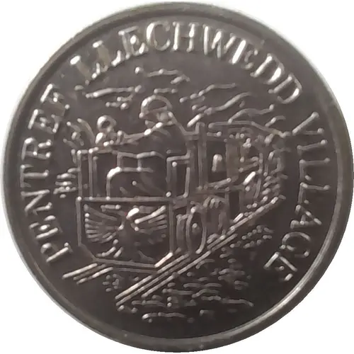 | Mô tả mặt trước | Image of a slate train. Lettering around circumference |