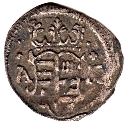 | Obverse description | Crowned four-fold arms divide the mint master`s (AK) initials. |