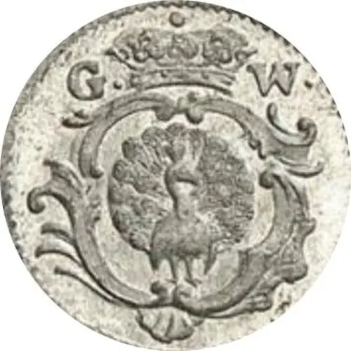 | Obverse description | Peacock in crowned cartouche dividing legend above. |