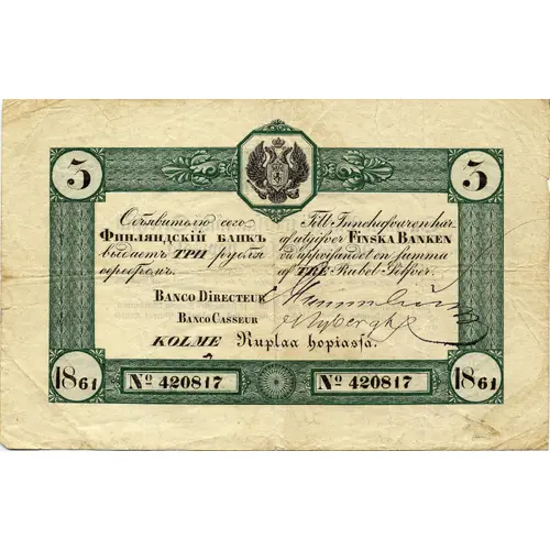 Obverse description Green and black. Double headed eagle at top centre. Text in Russian, Swedish and Finnish.