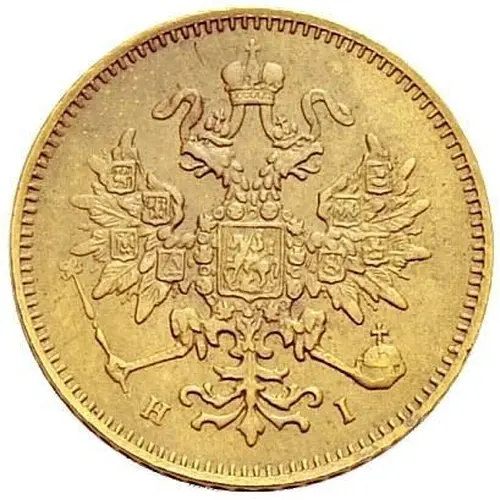 ЧИСТАГО ЗОЛОТА 81 ДОЛЯ * * 3 * РУБЛЯ 1877 С.П.Б. (Translation: Pure Gold 3 Roubles SPB) |