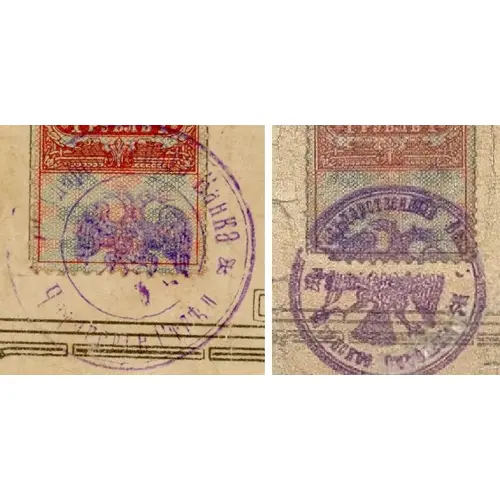 (Note) ЧИТИНСКОЕ ОТДЕЛѢНИЕ Государственнаго Банка. Имѣетъ хожденіе наравнѣ съ кредитными билетами в предѣлахъ Забайкальской области. (Paper Stamp) контрольная марка 3 три рубля (Ink stamp) Читинское Отделение Государственного Банка (Translation: (Note) CHITA BRANCH OF THE STATE BANK. Valid for use in the Baikal region on a par with banknotes. (Paper Stamp) Control Stamp 3 three roubles (Ink stamp) Chita Branch of the State Bank) |