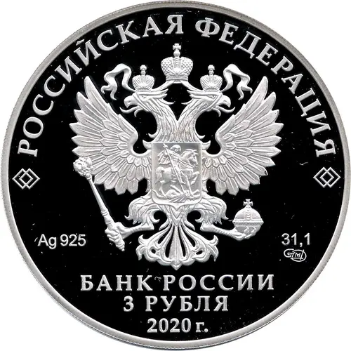 | Obverse lettering | РОССИЙСКАЯ ФЕДЕРАЦИЯ Ag 925 31,1 СПМД БАНК РОССИИ 3 РУБЛЯ 2020 г. (Translation: Russian Federation SPMD Bank of Russia Roubles) |