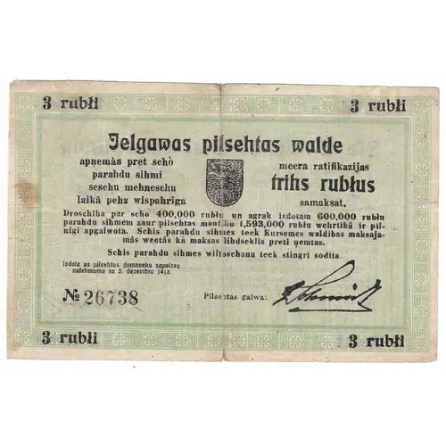 3 rubļi Latvia, Mitau, Jelgava