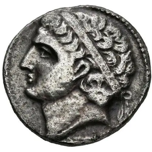 | Mô tả mặt trước | Diademed male head (Hamilcar?) to left, with hanging ties. |