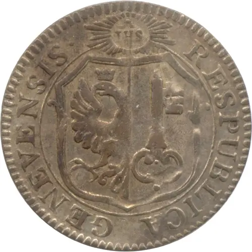 Obverse lettering IHS RESPUBLICA GENEVENSIS·