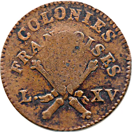 | Ön yüz lejandı | COLONIES FRANÇOISES L. XV (Translation: French colonies) |