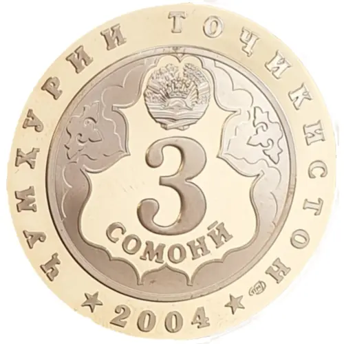 ★ ҶУМҲУРИИ ТОҶИКИСТОН ★ 2004 3 СОМОНӢ (Translation: Republic of Tajikistan, 3 Somonii) |