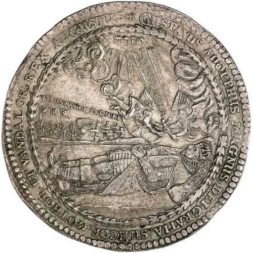 | Obverse description | King Gustav II Adolf lies out of the battlefield, two angels carrying his soul to heaven. |