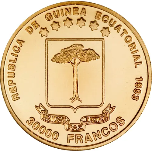 | Obverse lettering | REPUBLICA DE GUINEA ECUATORIAL 1993 30000 FRANCOS (Translation: Republic of Equatorial Guinea) |