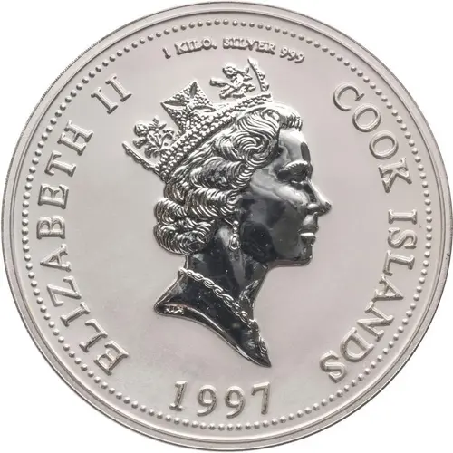 | Obverse lettering | ELIZABETH II 1 KILO. SILVER 999 COOK ISLANDS RDM 1997 |