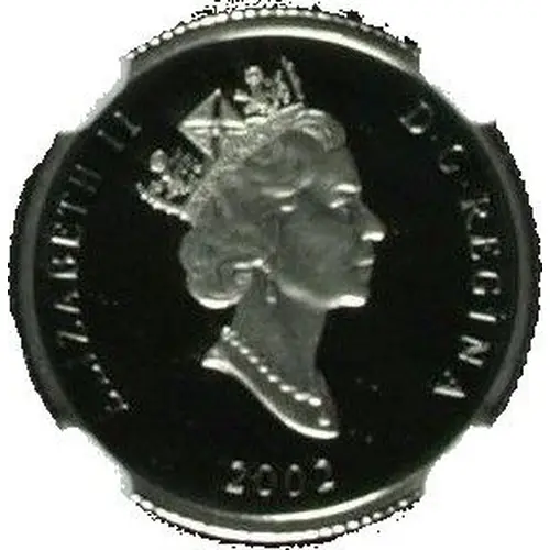 | نوشتههای روی سکه | ELIZABETH II DGREGINA 2002 (Translation: Elizabeth II Queen by the grace of God) |