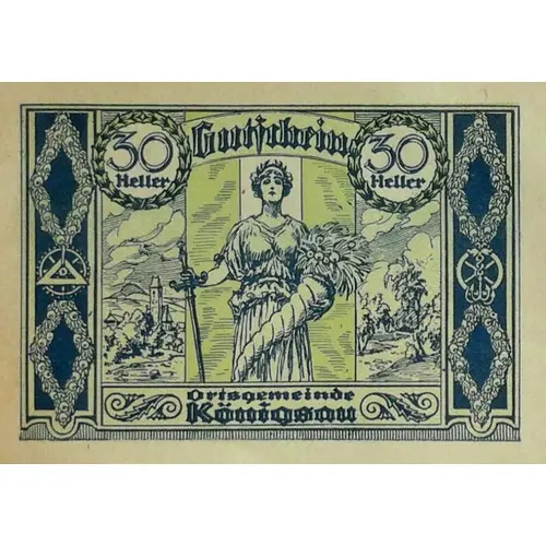 die gutscheine werden auf grund des gemeindeausschubbeschlusses vom 23. juli 1920 ausgegeben und bis 31. dezember 1920 in gesetzlichem bargelde eingelost. die nachahmung dieses scheines wird gesetzlich bestraft. der ortsvorsteher: Johann Riepl (Translation: the coupons due to the community extension decision Issued on July 23, 1920 and until December 31, 1920 in Cash cash redeemed. the imitation of this appearance is punished by law. the mayor: Johann Riepl) |