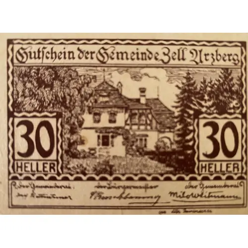 | Obverse lettering | Gutschein der Gemeinde Zell Arzberg |