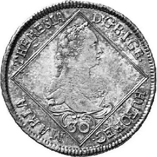 | 表面の銘文 | MARIA THERESIA D G R I GE HU BO REG 30 |